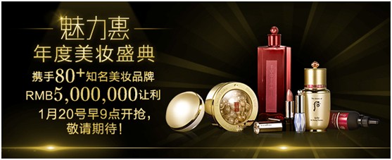 備受矚目的【魅力惠MEI.COM年度美妝盛典】拉開帷幕,此次時尚奢侈品閃購網站魅力惠MEI.COM攜手80多個知名美妝品牌,共同打造低至1折起的年度美妝盛典。年度美妝盛典全場活動給到消費者超過 RMB 5,000,000元讓利,價格突破全年最低,滿減滿贈,驚喜不斷!是美妝愛好者消費的最佳時機!從2014年1月13日開展投票活動以來,已經有近二十萬名粉絲熱情參與,榜單已經初露端倪,最好用的護膚、彩妝單品, 都由消費者親選,用口碑來說話!